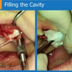 The lower left canine is both infected and fractured. Grafting was with autogenous bone and Augma Bond Apatite®. Due to uneven socket wall levels for the canine, and implant was…