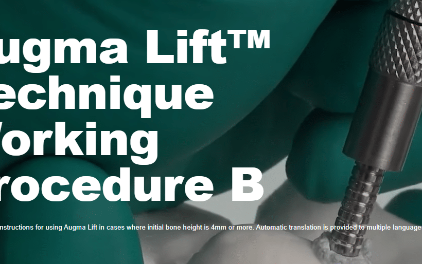 Kit B A healthy patient in her sixties came for implant treatment in her upper right first molar. The height of the sub-sinus bone is 6 millimeters. Augma Lift™ technique…