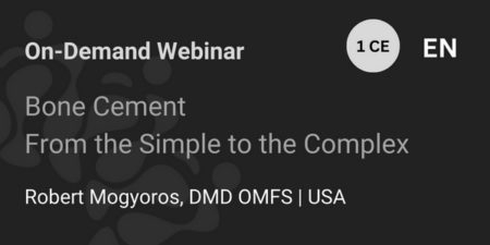 Current Status Not Enrolled Enroll in this course to get access Price Free Get Started Log In to Enroll Course Materials Description: Bone cements have rapidly gained favor in the reality of oral grafting procedures. The utility of cements as … Continue reading Dr. Robert Mogyoros – Bone Cement: From the Simple to the Complex – 1 CE