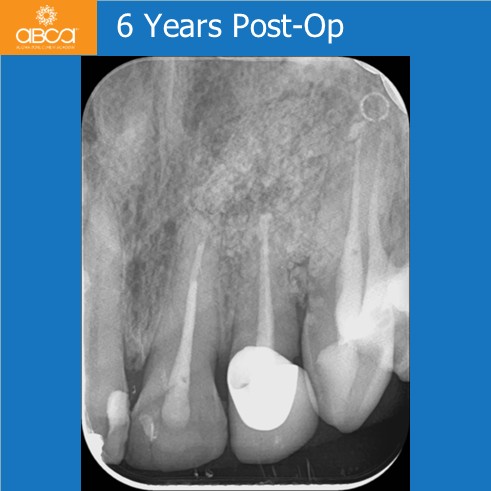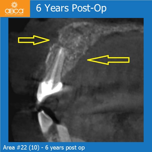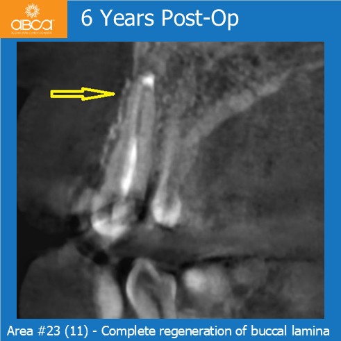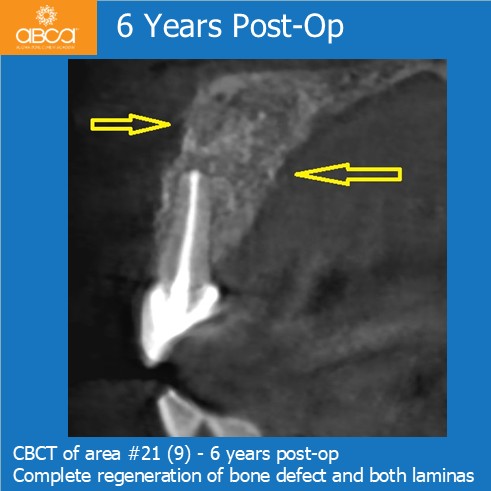 At the six-year follow-up, we observed good bone remodeling and healing, including complete and stable regeneration of both cortical plates.