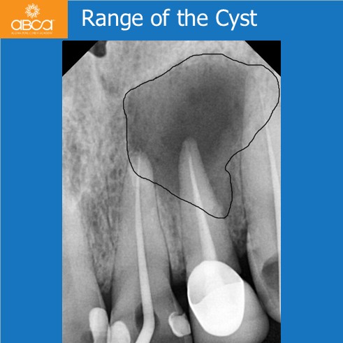 A healthy 34-year-old man, a professional mixed martial arts (MMA) athlete, presented with daily pain and discomfort. A cyst developed two years after endodontic treatment of teeth #21 (9), #22 (10), and #23 (11), which had been performed following facial trauma sustained during MMA training.