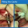 The patient is a healthy 47-year-old female with a periapical lesion on tooth #22 (10). In 2017 the patient presented with a small periapical lesion and internal resorption. Despite having a treatment plan in place, the patient chose not to undergo treatment. In 2023 she returned with a very large lesion involving buccal and palatal plates, and the bone surrounding tooth #23 (11), which is still vital.