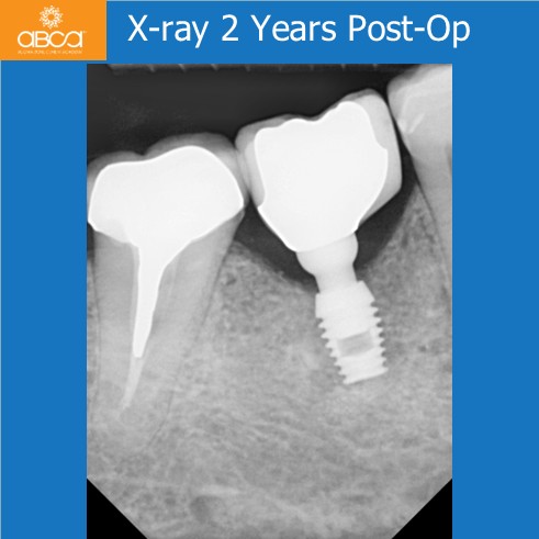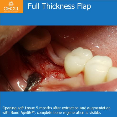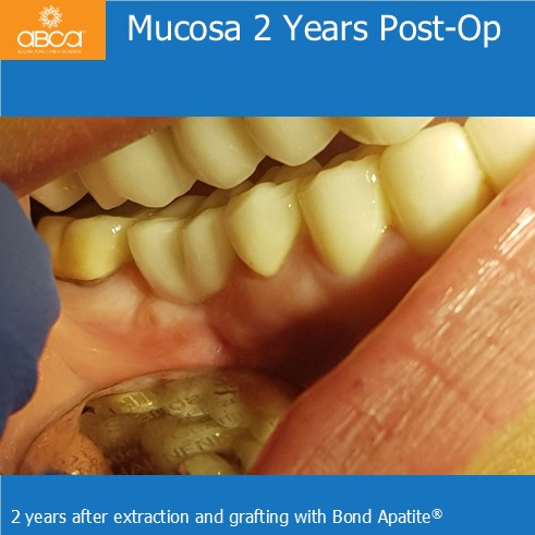 Conclusion: We successfully regenerated the bone defect due to the bioactive and osteoconductive properties of Bond Apatite®. Clinical and radiological follow-up two years after prosthetic restoration showed excellent results.