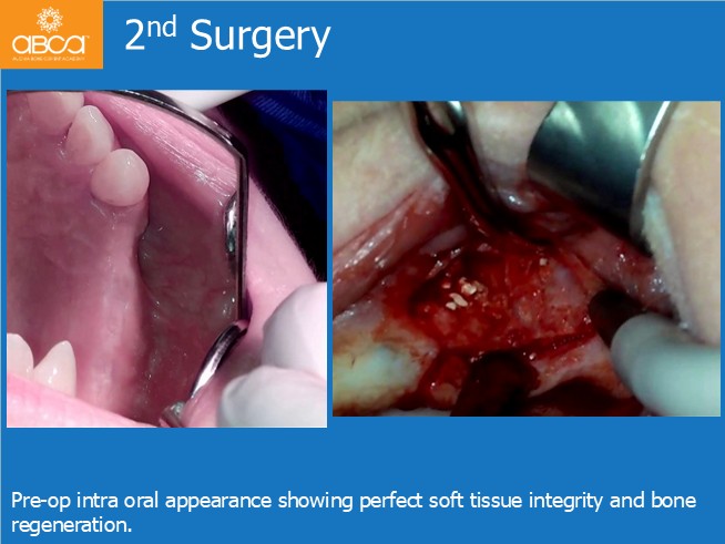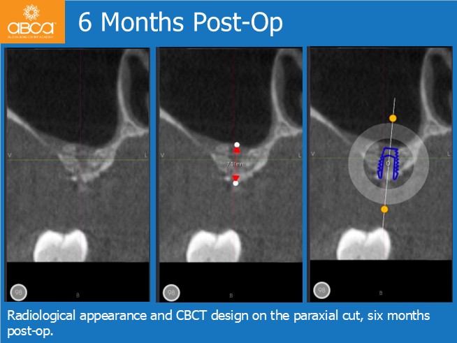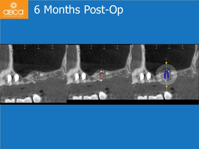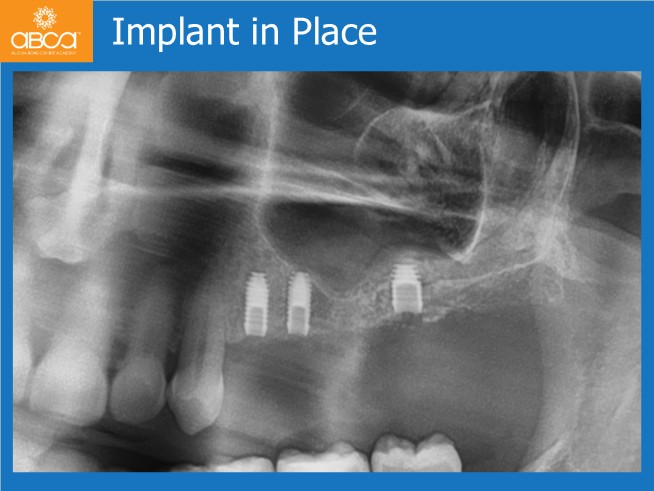 The surgical treatment proceeded successfully in two stages. First, the clinician placed implants in the premolar sites and performed the sinus lift. After six months, an implant was placed in site #27 (15).