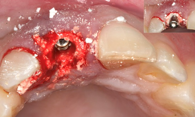 - Reposition the gingival flap without tension or periosteal releasing incisions. Do not attempt primary closure.