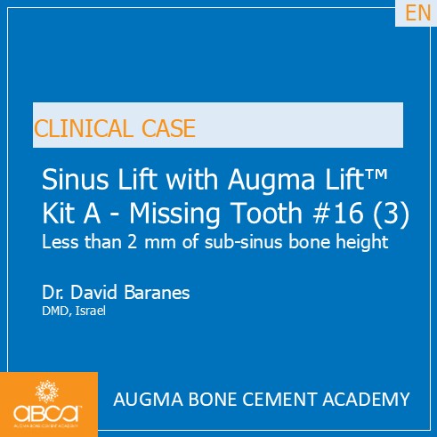 Categories3-6 Months, Augma Bone Cement Academy, Augma Lift™, Bond Apatite®, Bone Cement Expert, Clinical Cases, Closed Sinus Lift, Images, Kit A, Post-Op Period, Sinus Lift, Upper Right Molar March 2, 2026 Sinus Lift with Augma Lift™ Kit A – Missing Tooth #16 (3) Less than 2 mm of sub-sinus bone height Post navigationPrev Rehabilitation of the Left Maxilla, with Immediate Implant Placement Next Augma Simplified Webinar Leave a Reply Cancel replyYou must be logged in to post a comment.