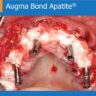 Initial CBCT images show the estimated ridge height as 1-2mm below the sinus. The BY2 diamond milling bur breaks through the sinus floor. Following the Augma Lift™ technique protocol, membrane elevation and augmentation are performed. Radiography shows implant placement 4 months post-op in newly formed bone.